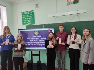16 ноября под руководством ст. преподавателя Томашук Н.В. на базе ГУО «Гимназия № 10 г.Гомеля» прошло профориентационное мероприятие «Добро пожаловать на факультет иностранных языков ГГУ имени Ф. Скорины».